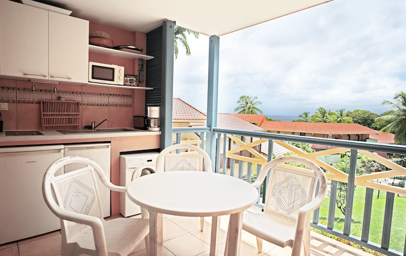 Le studio climatisé est équipé d’une pièce principale de 22m2 avec placard, tv, wifi, un grand lit (ou 2 lits simples), d’un canapé, une salle de bain, d’un balcon avec cuisine équipée de plaques de cuisson, d’un réfrigérateur, d’un congélateur, d’un lave linge, d’un four micro ondes, une cafetière, une bouilloire, un grill pain et d’un kit vaisselle. Le complexe a été construit en bord de plage de l’anse caritan. De multiples autres plages sont accessibles à pieds.